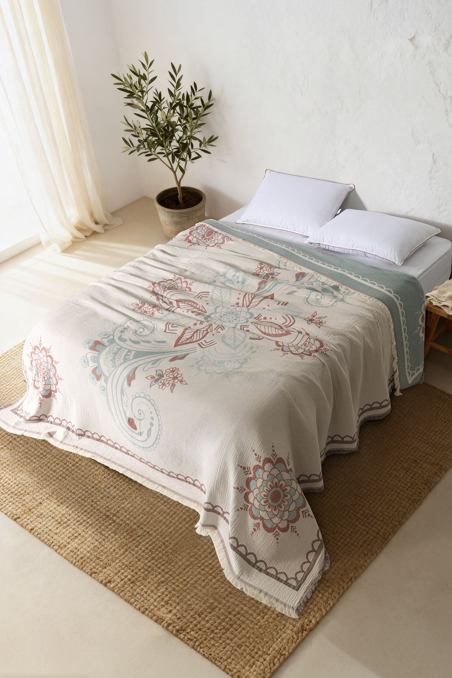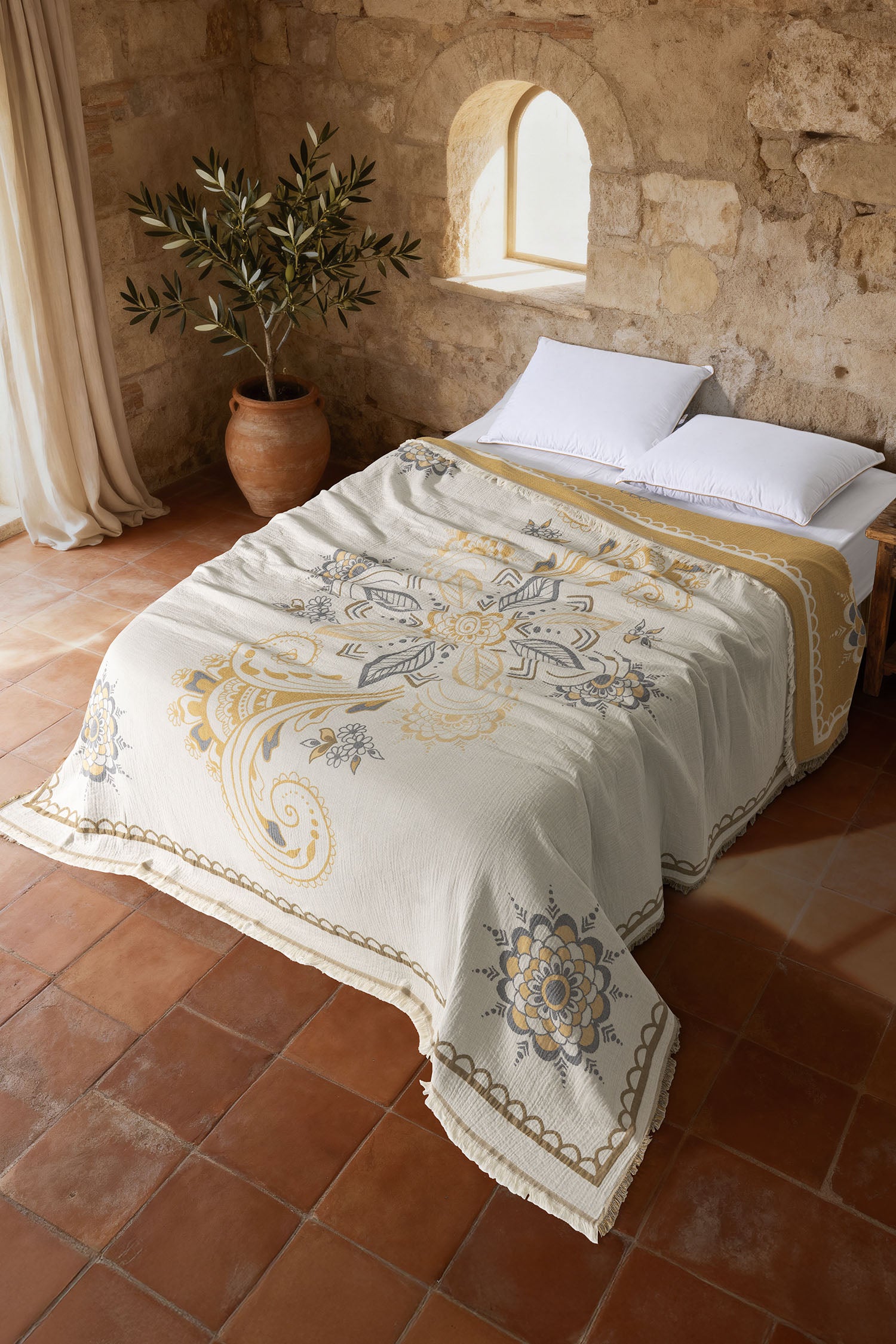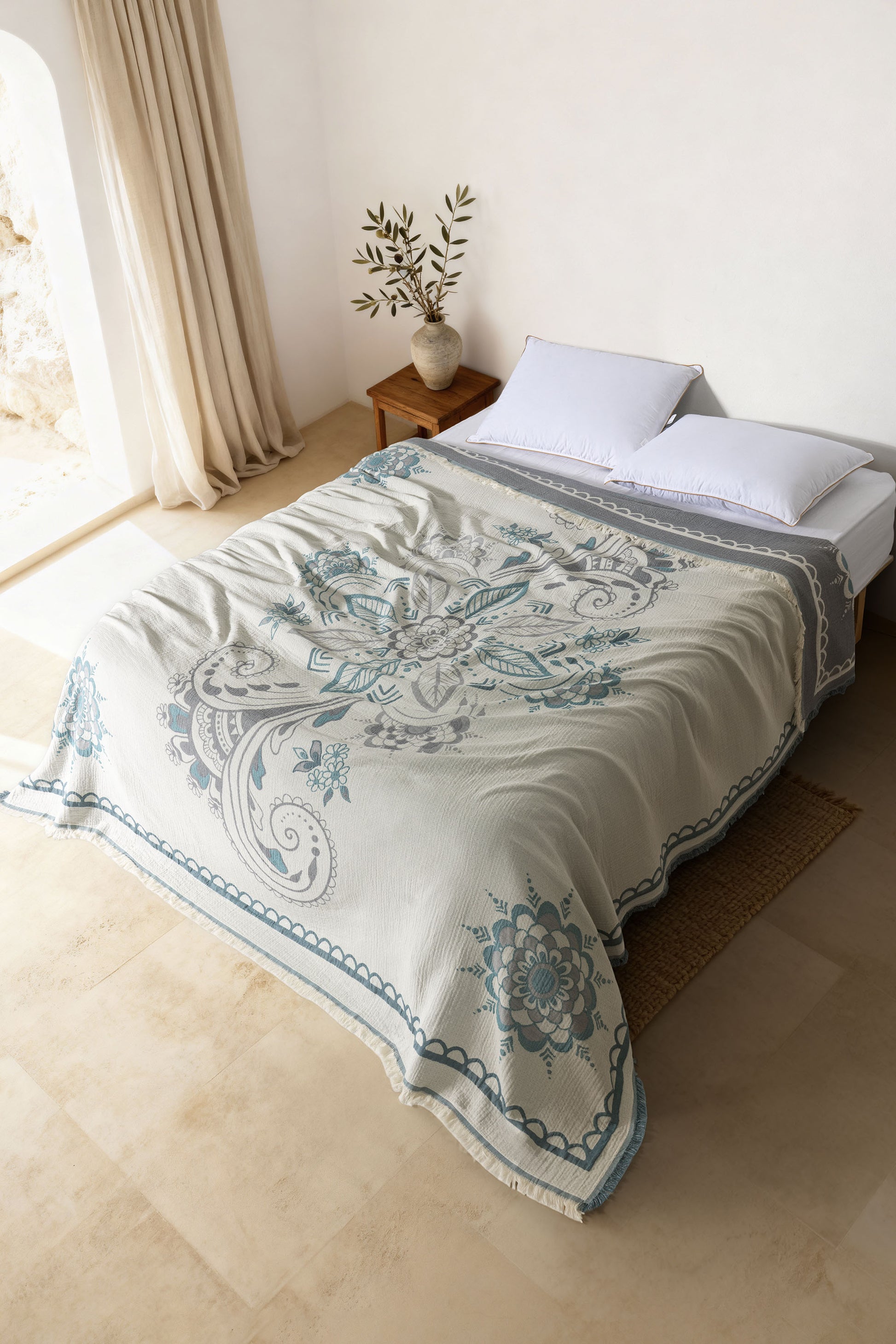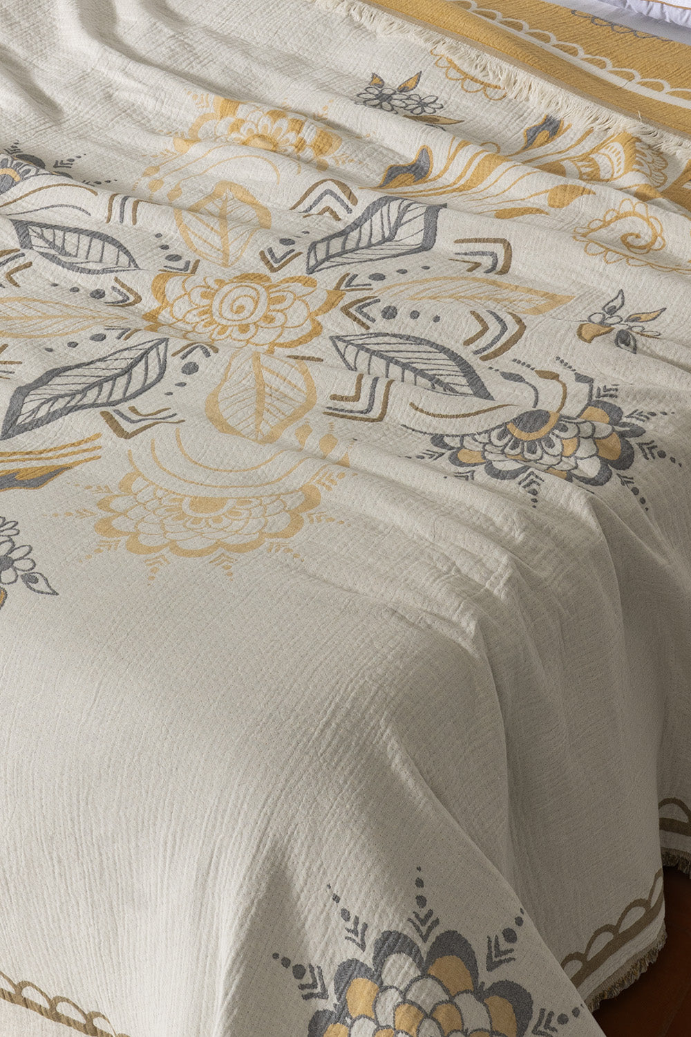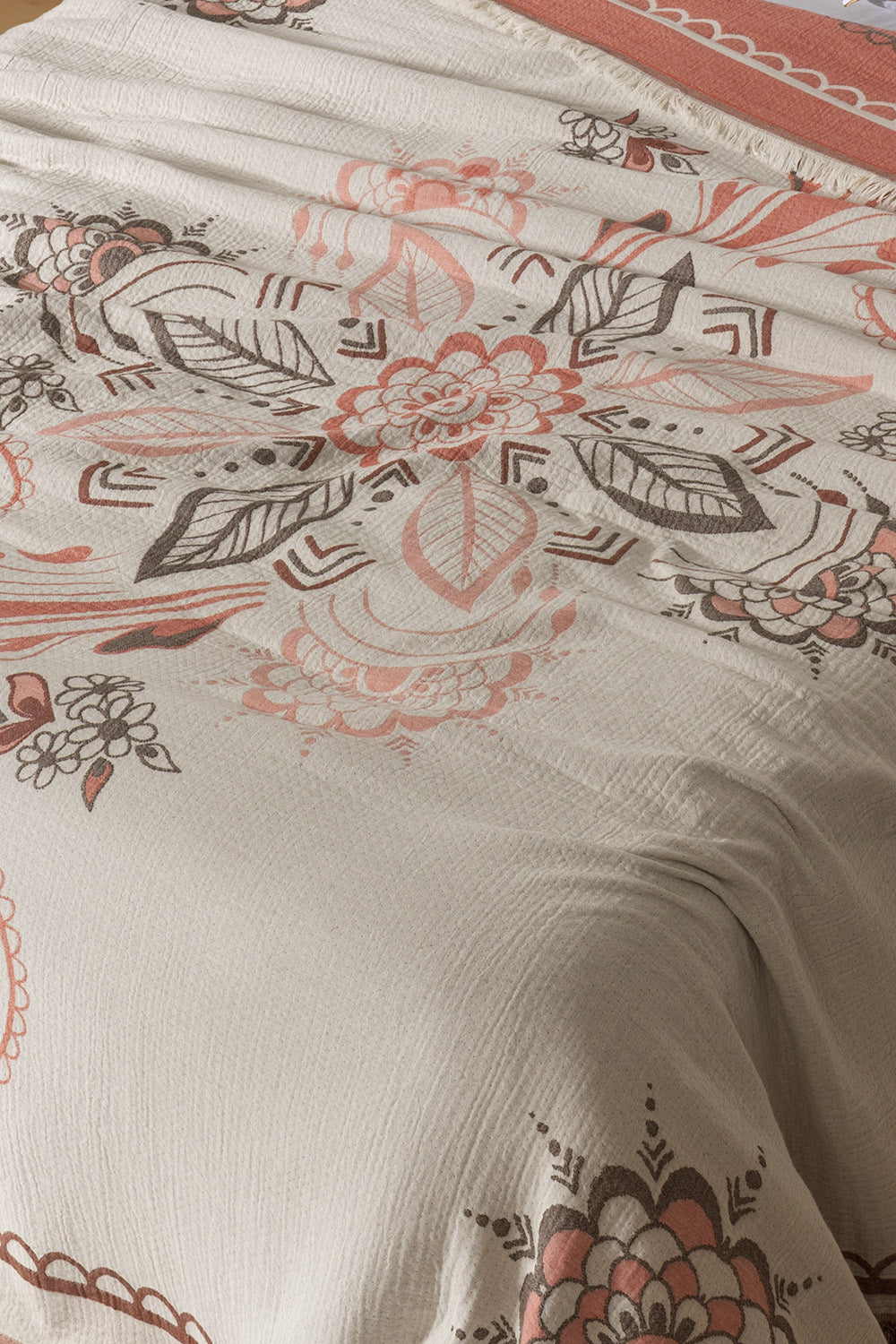 Amber 4 Katlı Jumbo Jakarlı Pano Desen Müslin Pike / Yatak Örtüsü %100 Pamuk