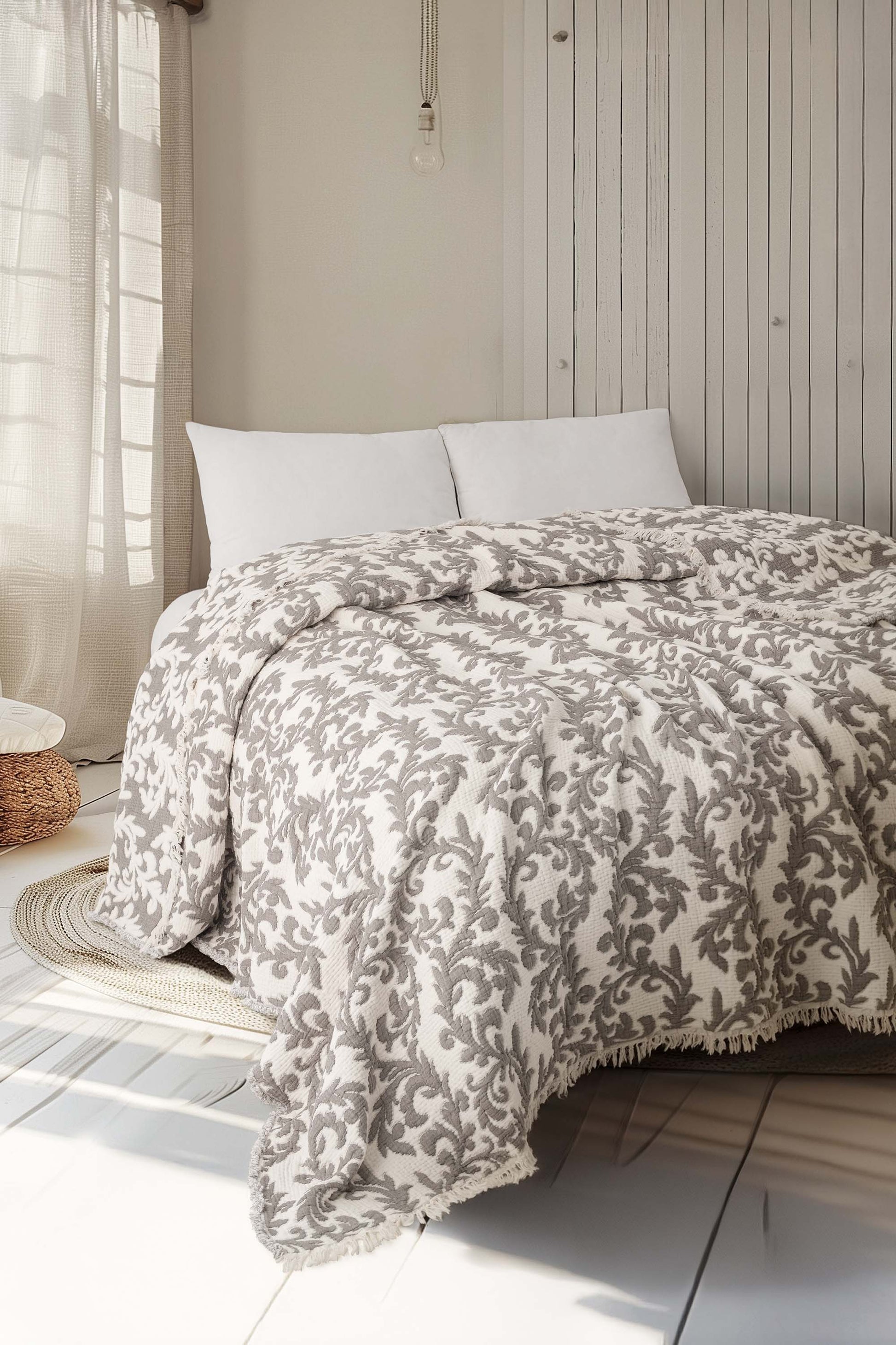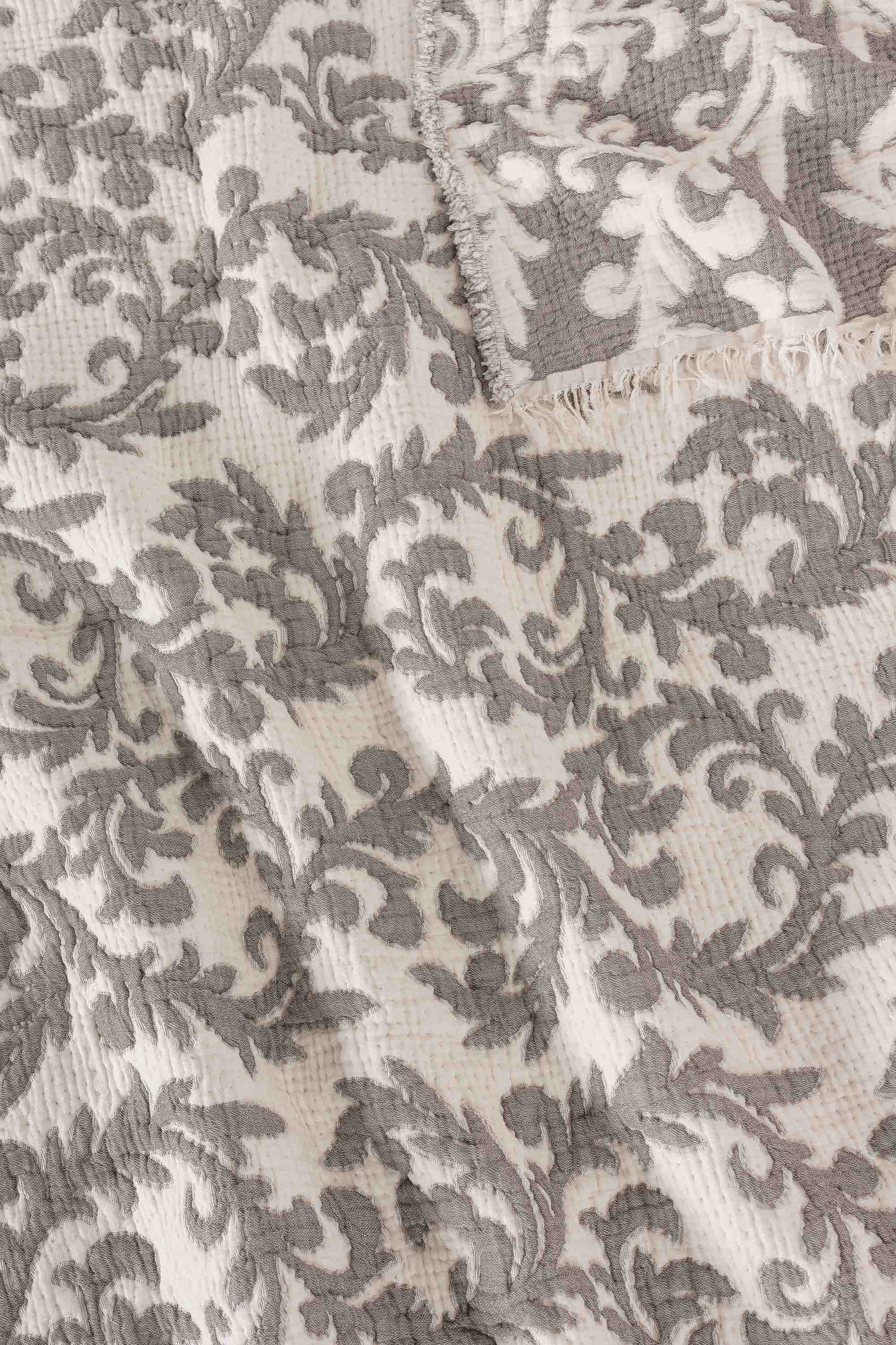 Yatak odanıza zarafet ve konfor katan 5 Katlı Dolgulu Müslin Yorgan / Yatak Örtüsü, ultra yumuşak dokusu ve şık jakarlı desenleriyle hem estetik hem de işlevsel bir deneyim sunar. This Damask Cotton Duvet is not only designed for elegance but also for maximum comfort, ensuring you enjoy a restful night's sleep. %100 pamuklu yüzeyleriyle cilt dostu olan bu yorgan, mevsim geçişlerinde ideal bir seçimdir. With its breathable fabric, the Damask Cotton Duvet keeps you cozy in cooler months while also being light enough for warmer weather. Silikon dolgusu sayesinde kabarık ve hafif olan ürün, yatak örtüsü veya pike olarak da kullanılabilir. Enjoy versatility with this product, as it serves multiple purposes for your bedding needs. Parça yıkama yapıldığı için yıkandığında çekme yapmaz. This feature adds to the durability of the Damask Cotton Duvet, making it a wise investment for your home.