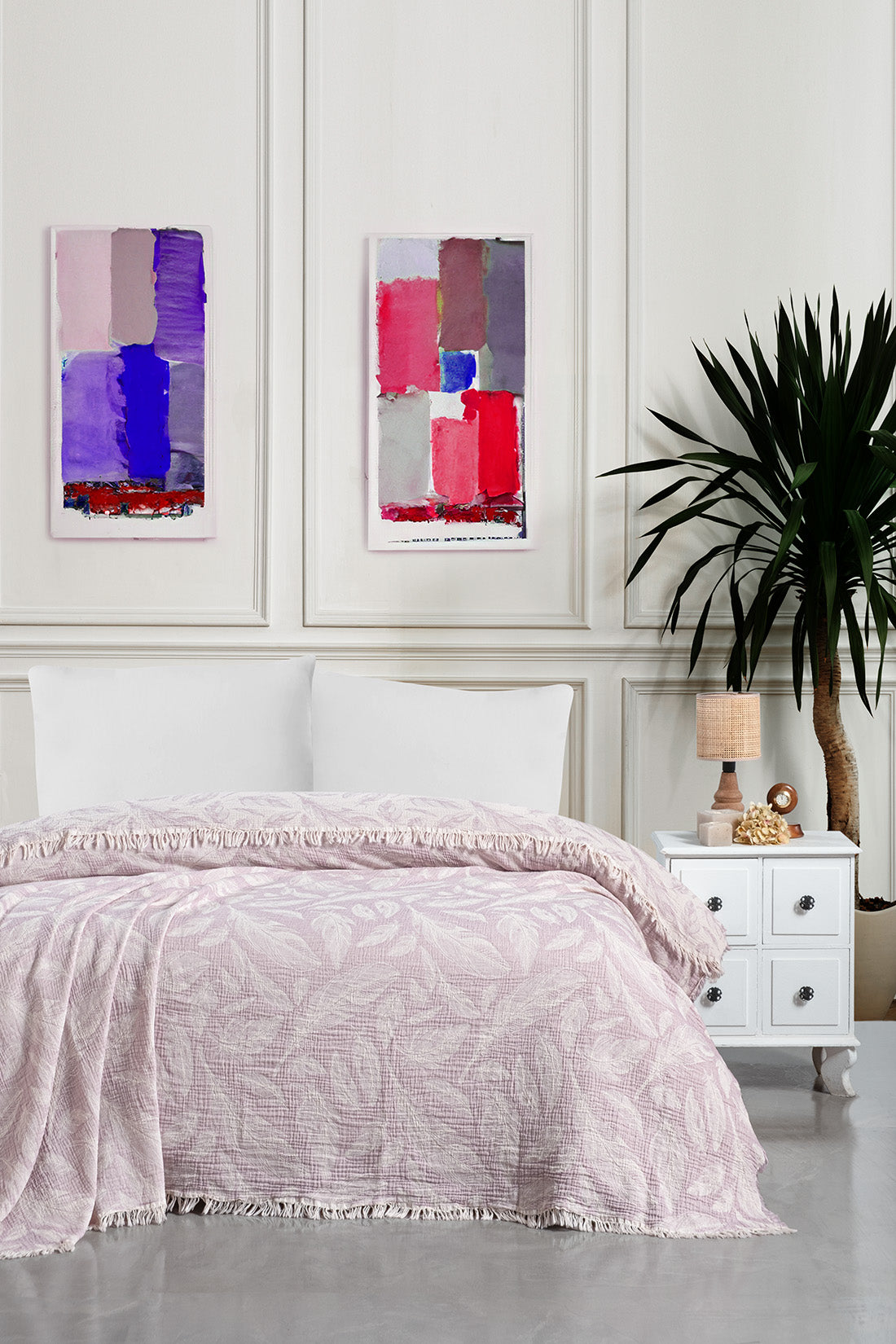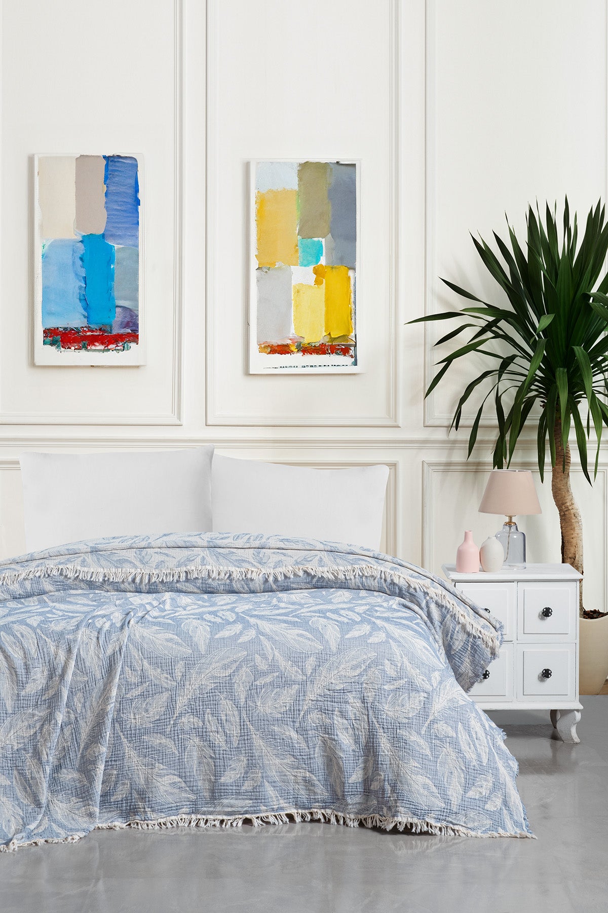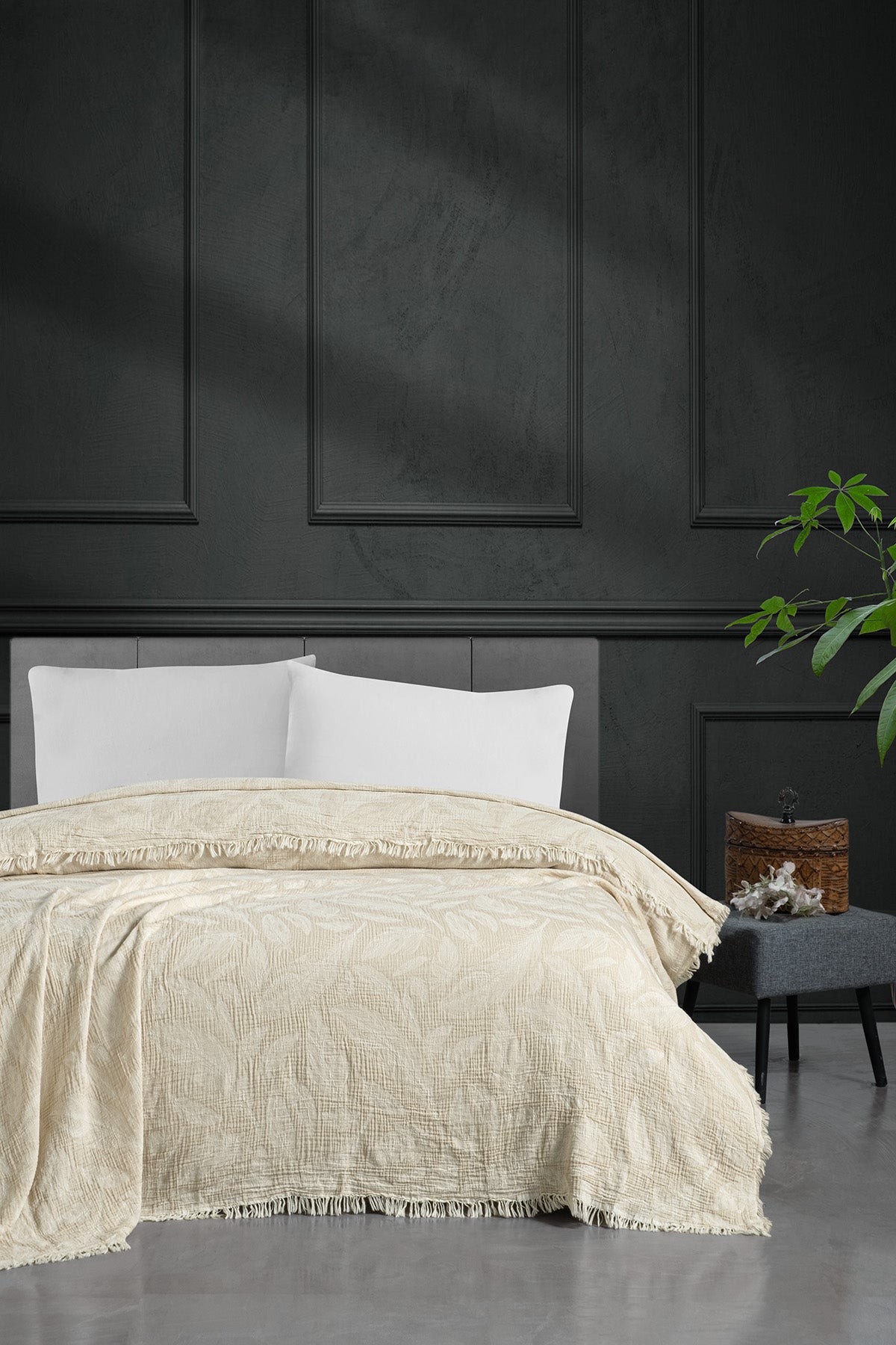 Plume 3 Katlı Jakarlı Müslin Pike / Yatak Örtüsü %100 Pamuk
