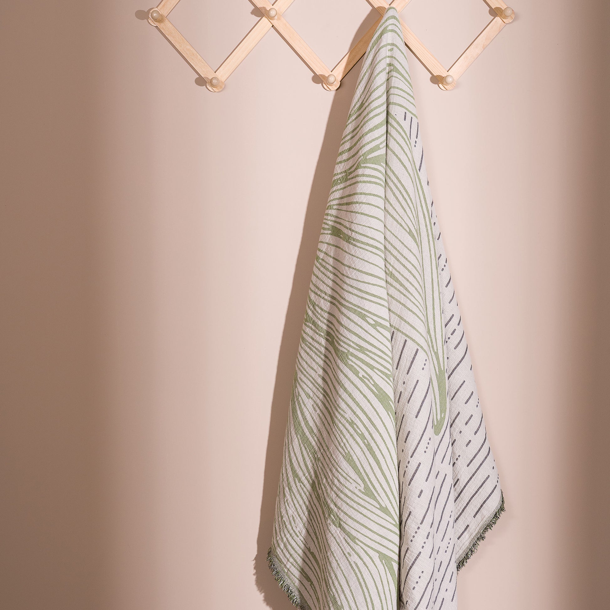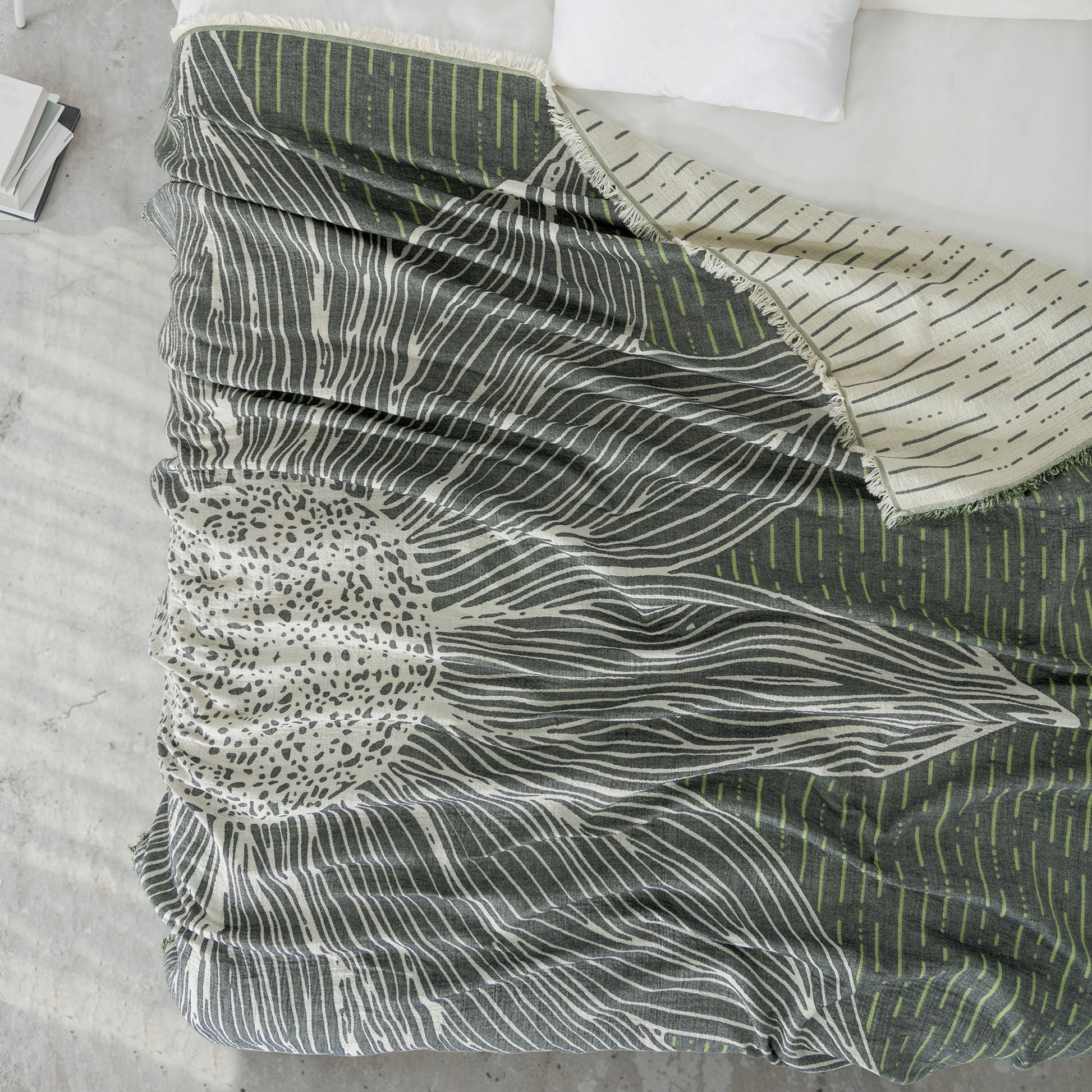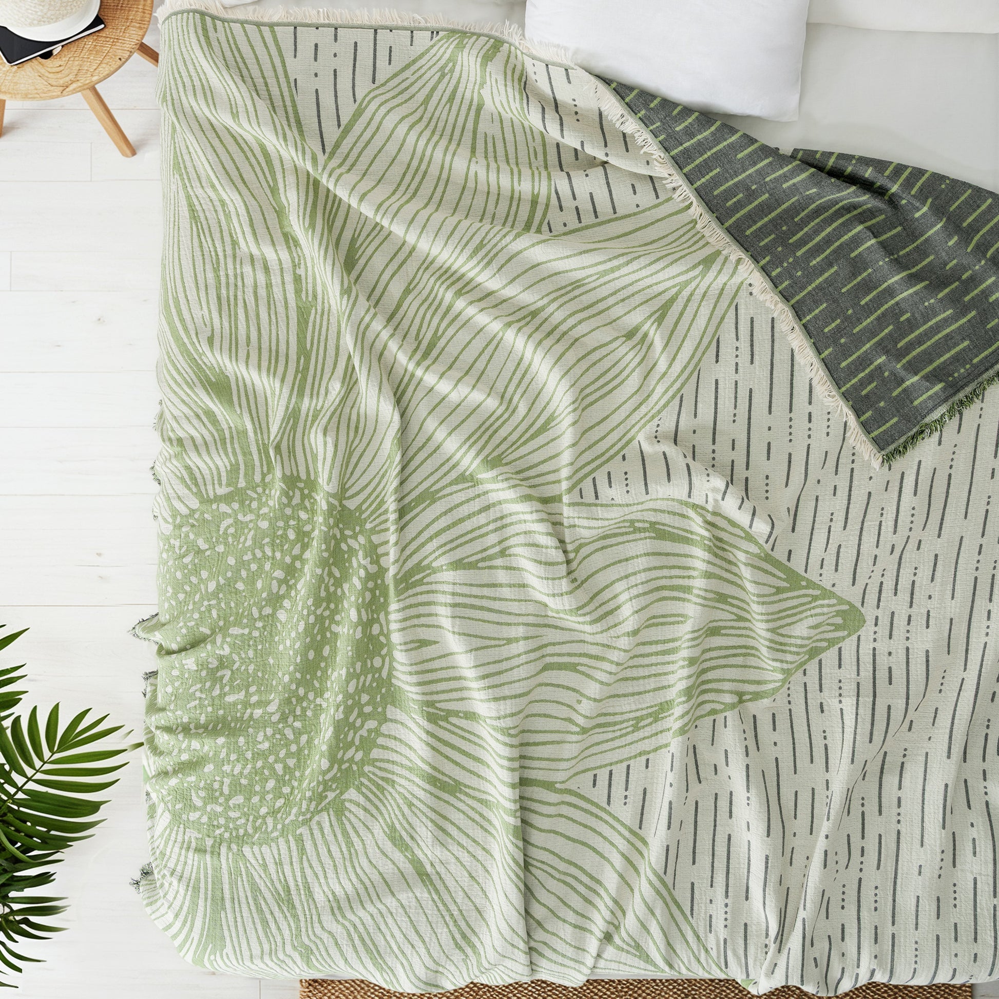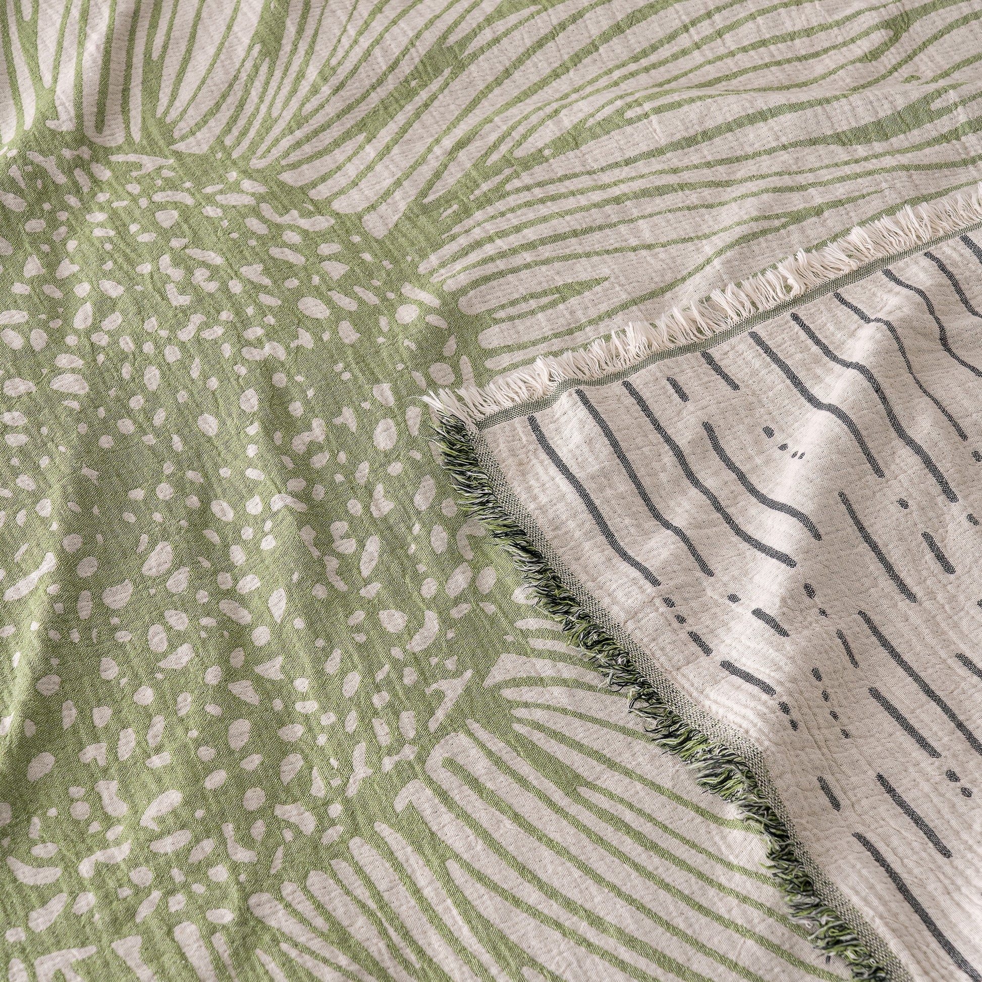 Sunflower Yeşil 4 Katlı Jumbo Jakarlı Pano Desen Müslin Pike 185x215 cm %100 Pamuk