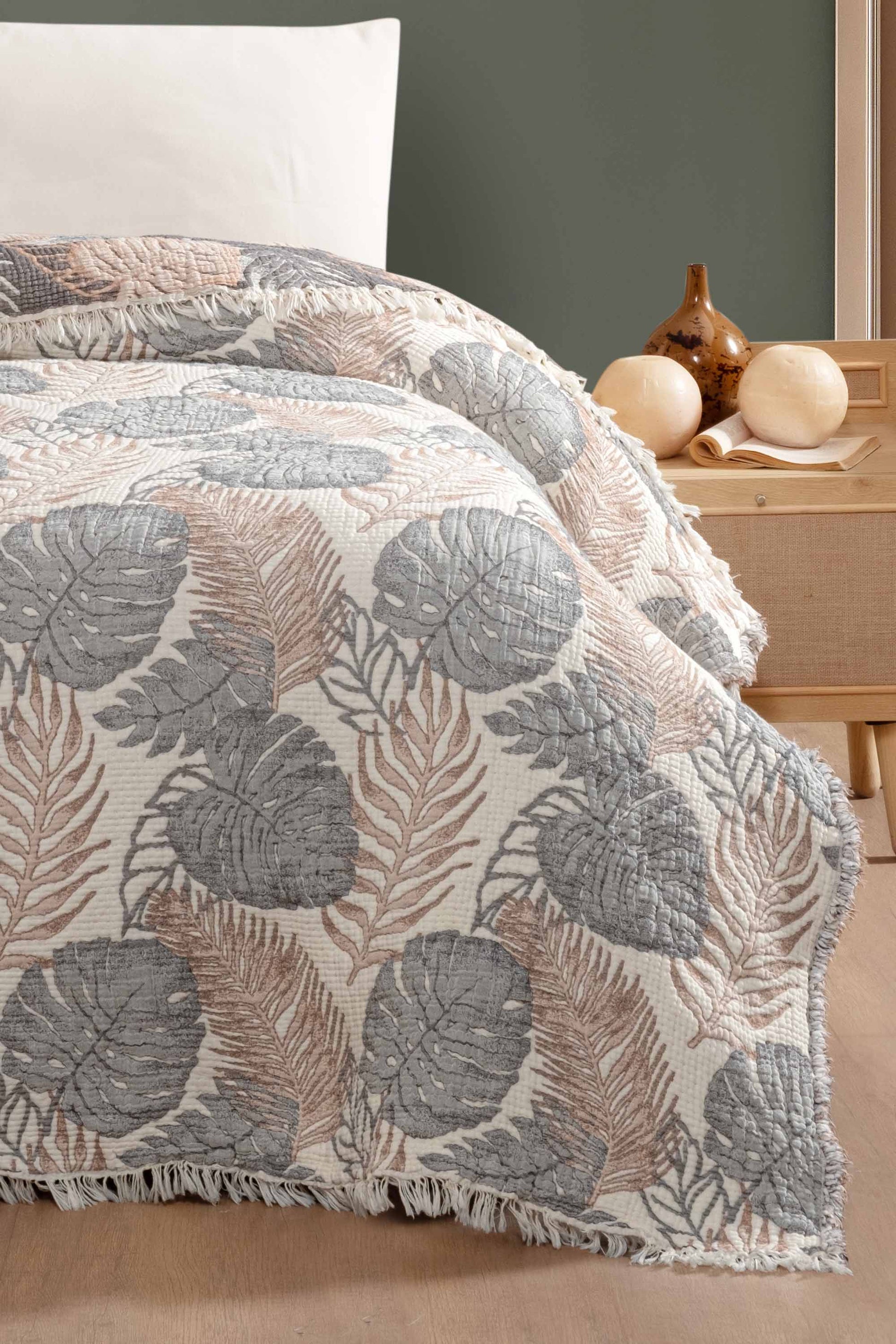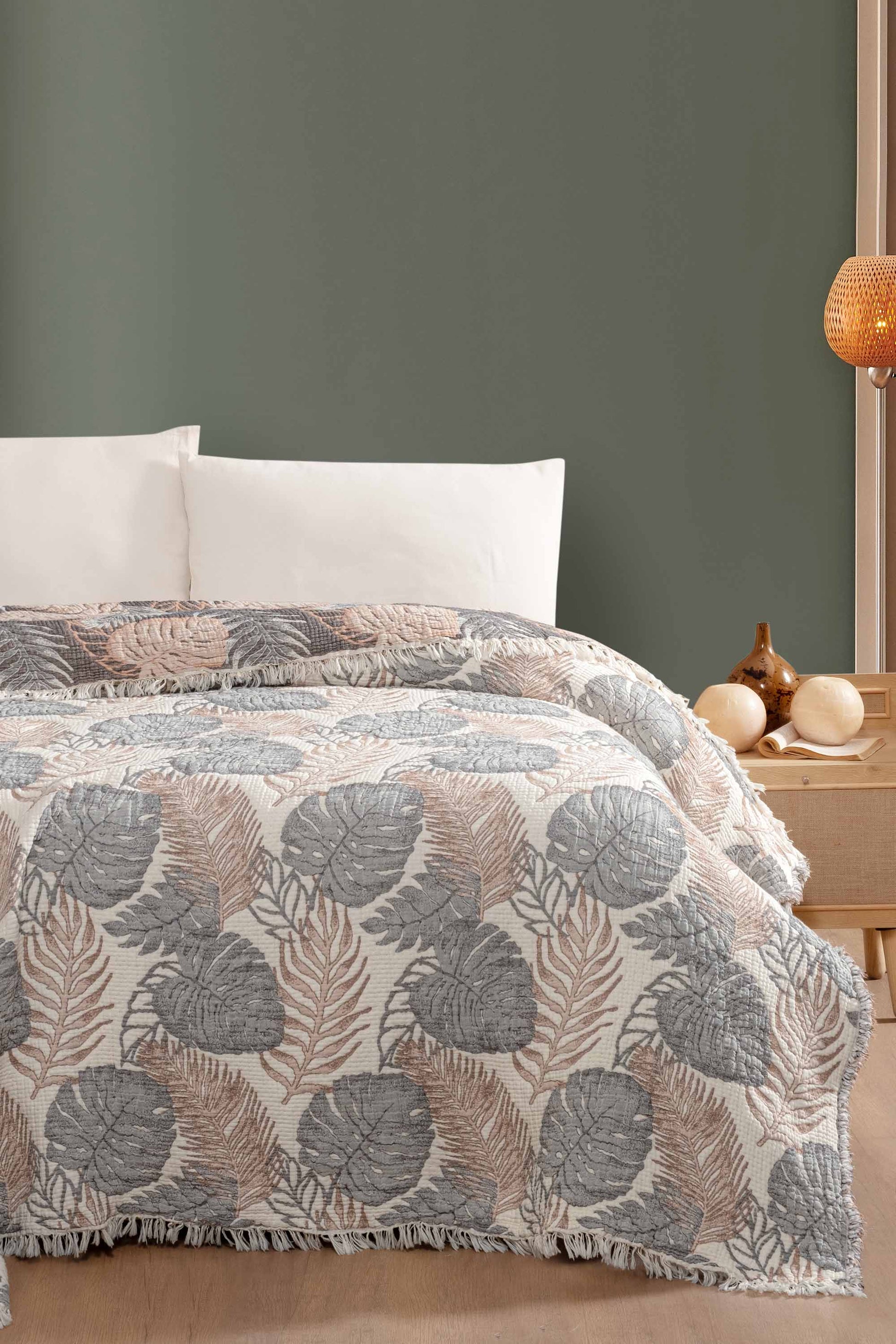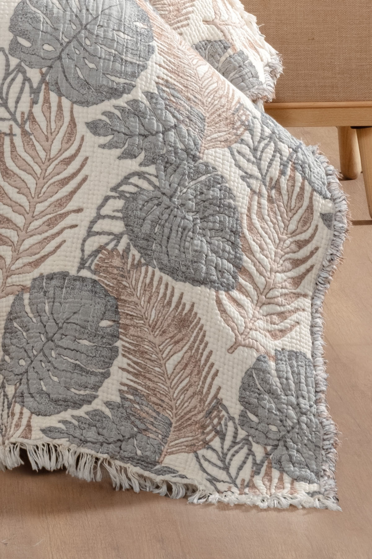 - Estetik Tasarım: Jakarlı dokuma desenleri ve saçaklı kenarlarıyla yatak odanıza zarif bir dokunuş.