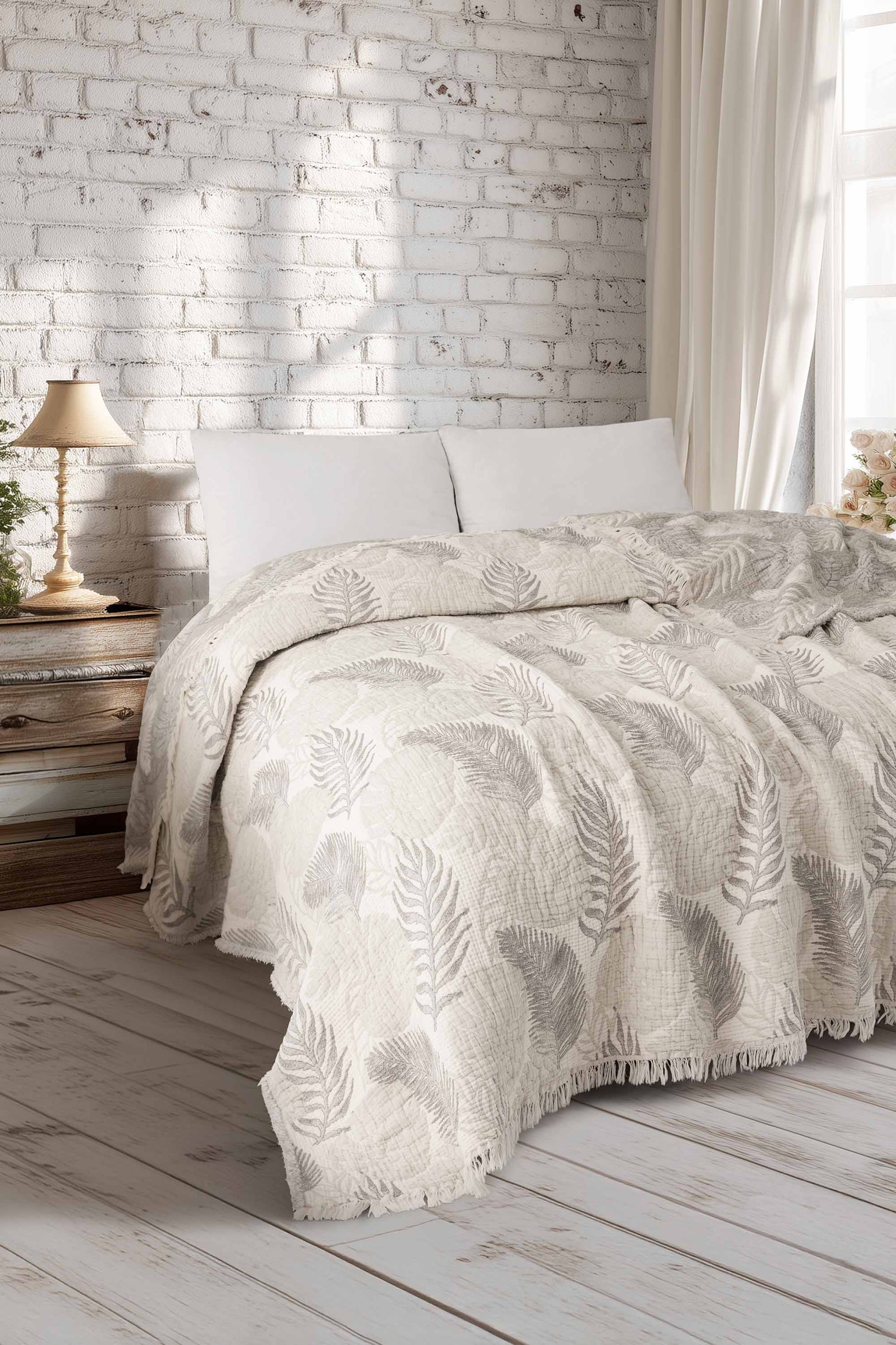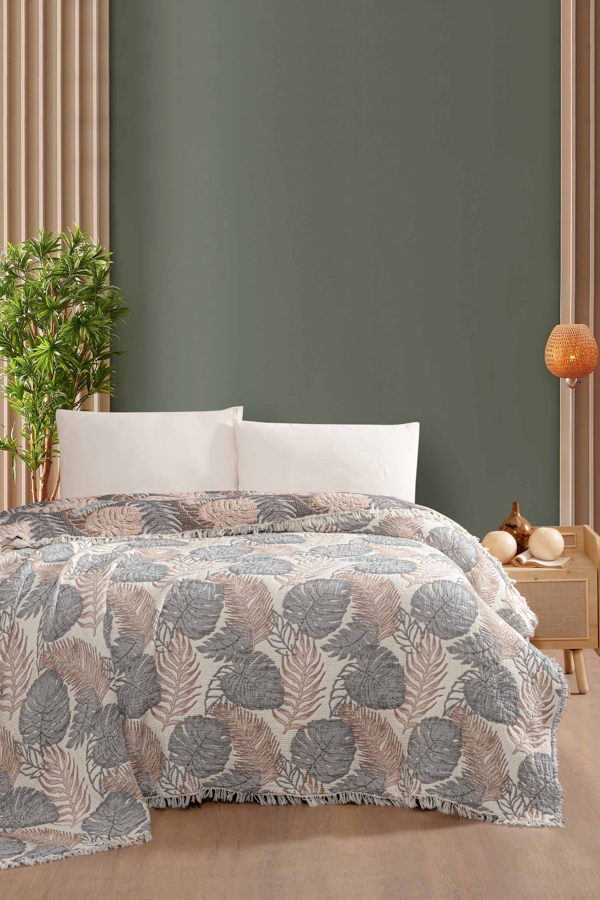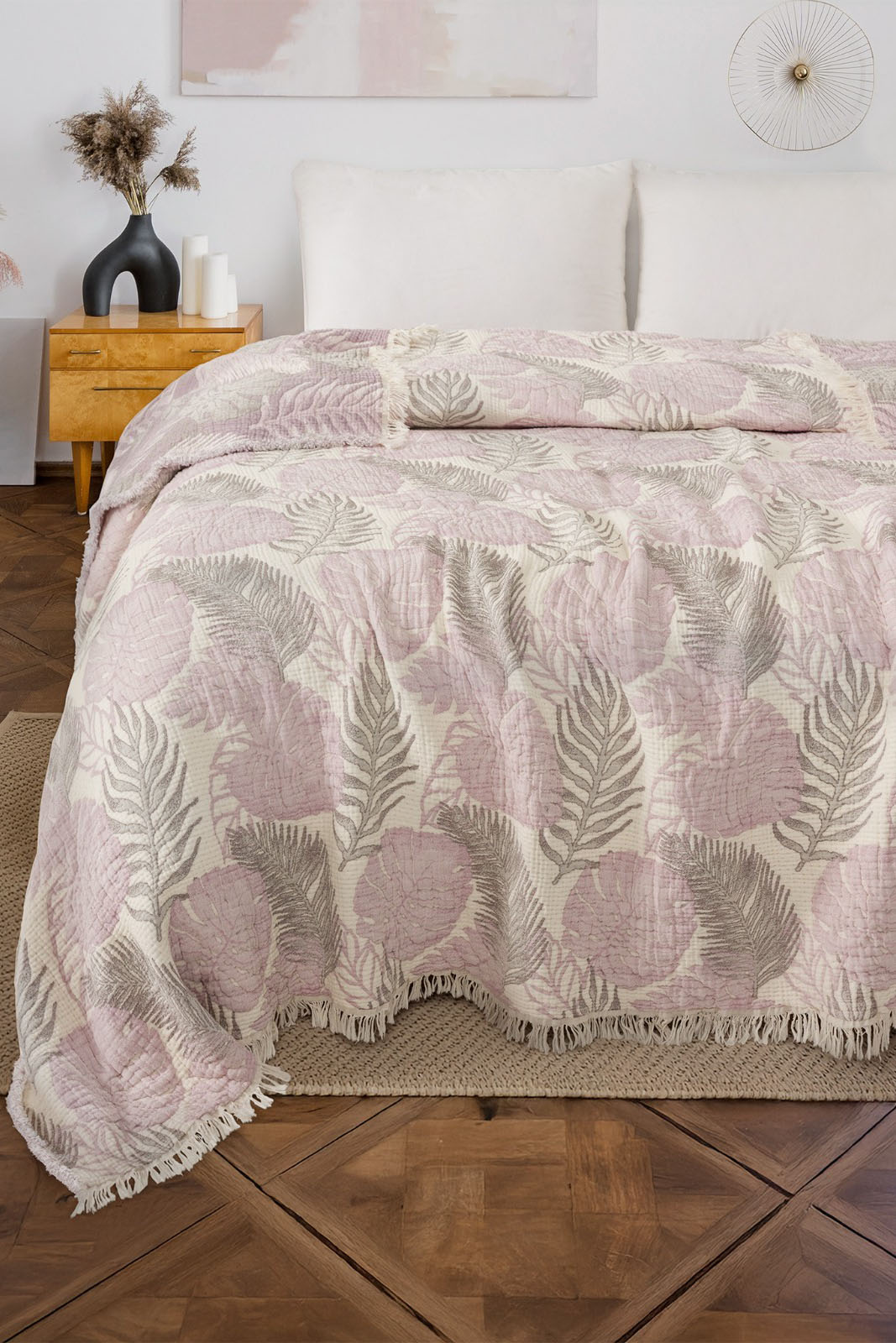 - Estetik Tasarım: Jakarlı dokuma desenleri ve saçaklı kenarlarıyla yatak odanıza zarif bir dokunuş.